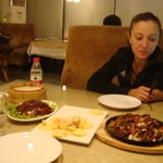 A côté, nous avons pris du boeuf sauté, pas mal non plus mais pas aussi bon, et des crevettes tempuras absolument exquises, avec la crème qui les recouvrait, et les petits morceaux d'orange ou de citron posés sur le dessus... on en redemande !