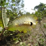 scorpions. Rien non plus. Nous continuons, et Dany nous fait découvrir, en voyant des fourmis sur des feuilles ce que cache leur dessous, comme ici une chenille particulièrement velue, ou là des