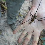 impressionnant (aussi sur le tronc des arbres), ou des centaines de "Lady long legs" - des araignées aux pattes fines qui détalent dans le feuillage au sol à notre approche, et que nous