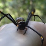 gauche. Un magnifique papillon..... non, on rigole. Une superbe araignée noire (mais pas une mygale ou tarantule, qui vivent plutôt au niveau du sol), avec quelques touches de couleurs, et aux