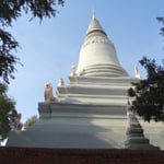 nous nous arrêtons pour tourner autour de la stupa du temple boudhiste "Wat Phnom", construit en 1373, et perchée sur une colline à 27 mètres de haut. A l'intérieur, un boudha doré et des