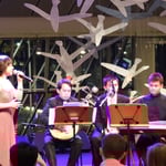les soirs ces jours-ci jusqu'à dimanche, des concerts gratuits un peu partout se succèdent par ici. Dans le hall derrière nous, nous allons ensuite écouter une chanteuse pour quelques