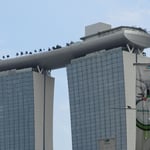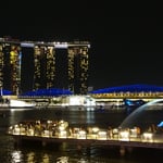 la ville, l'hôtel Marina Bay Sands, situé au sud. Il est un peu moins grand que ce que nous pensions. Cela dit, nous ne sommes pas tout près non plus. Sur notre droite, le quartier de Clark