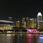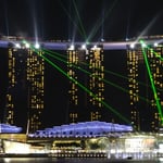 ciel ouvert, d'où nous parviennent quelques notes. Nous nous approchons, via l'immense pont qui supporte une fois par an le passage des formule 1 pour le grand prix de Singapour.