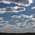 Retour en ville, à travers les 10km, bordés de sable et des fameux panneaux jaunes triangulaires avec un kangourou. Le ciel est maintenant uniformément tacheté de nuages blancs, flottant tous à