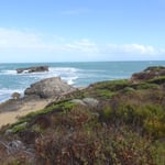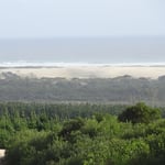 sable en suivant le chemin indiqué, pour tomber face à l'océan, tout au fond, sur une côte vierge, remplie de dunes de sable. Quel changement après avoir roulé entouré de sapins depuis trois