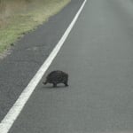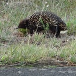 En début d'après-midi, nous croisons un "ant eater", une sorte de petit tamanoir (son vrai nom, que nous apprendrons ultérieurelemnt, est "echidna"). Une sorte d'hérisson avec un long nez