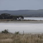 Il fait maintenant un grand ciel bleu. C'est un peu les giboulés de mars ici. Nous sommes sur la Limestone Coast. A un embranchement, nous choisissons de tourner à droite, vers Nora Creina (il y a apparemment des choses à voir par là), et prenons de nouveau une piste. Après 10 minutes, nous rebroussons chemin, car la pente devant nous, qu'il faut monter, ne nous inspire pas. Trop longue, trop pentu. Pas envie d'avoir un problème, d'avoir des frais à payer plus tard parce que la voiture n'avait pas assez de puissance pour grimper, et est repartie en arrière. Elle a l'odeur d'un 4x4, mais ce n'en est pas un. Nous retrouvons alors, pour ne pas changer, non pas des boeufs, mais un lac de sel rosé. Le Lake St Clair ou plutôt le Big Dip Lake ? On ne sait pas bien. L'un ne doit pas être loin de l'autre de toutes manières. Nous faisons un arrêt au "woakwine cutting", un passage creusé dans la roche, de dix mètres de large, pour permettre à l'eau de l'océan (que nous voyons au loin) de passer et d'irriguer les champs que nous verrons un peu plus tard depuis un lookout donnant sur une grande plaine. Là bas, de belles différences de couleurs apparaissent, avec une belle bataille chromatique autour du vert et du jaune, en fonction du niveau de sécheresse, d'irrigation ou d'ensoleillement.