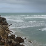 Départ à 9h40, après un petit coup d'oeil aux commentaires laissés sur le site. Le genre de détail qui nous met toujours de bonne humeur. On s'aperçoit qu'il est 23h45 en France, et que vous allez vous coucher quand nous commençons notre journée. Ca fait drôle. Typiquement le truc qui nous rappelle que l'on est presque à l'autre bout du monde. Le temps est orageux. Nous levons l'ancre, après avoir chargé le coffre, et tournons à droite juste avant la ville de Robe, initialement notre point de chute d'hier soir. Nous prenons la route de Little Dip Conservation Park, pas très bien goudronnée. Nous n'aurions peut-être pas roulé ici avec cette voiture il y a deux semaines, mais aujourd'hui, en voyant que les compagnies de location ne facturent rien tant que les éventuels impacts sur la peinture ne dépassent pas un centimètre, et que nous avons déjà pris ce genre de route en gravier, nous sommes beaucoup moins stressés. Mais finalement, nous faisons demi-tour, car nous tombons sur une route goudronnée et n'avons plus d'information par rapport au parc que nous souhaitions aller voir. Pas envie de se perdre, ou de passer trop de temps à chercher. Arrivés à Robe, nous allons nous garer près de plusieurs points de vue en bord de mer. Sur l'un d'eux, nous rentrons presque trempés, surpris par l'arrivée rapide de la pluie. Le panorama n'en reste pas moins très joli, avec quelques falaises donnant directement sur l'océan, plutôt agité. A notre grande surprise, nous croisons des ruines, très semblables à des gallo-romaines. Inattendu dans ce coin du monde. Un peu plus loin, un obélisque termine un bout de terre, sur lequel nous pouvons marcher, et admirer la baie face à nous. Sur un rocher, à l'abri des vagues, un éléphant de mer prend le soleil, souvent caché. Le vent souffle par moment, et l'air est salé, à tel point qu'entre la pluie de tout-à-l'heure et les embruns, le pare-brise est couvert de sel. Arrêt rapide dans un supermarché pour acheter de quoi grignoter. Nous tombons sur des mentos goût pina colada et mojito, une découverte.