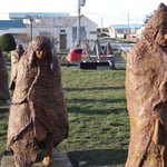 Nous arrivons à 13h, et commençons par une visite du musée, après s'être arrêtés brièvement sur la "place principale" regarder des statues des "Selknam", les habitants originaires de Terre de Feu, une tribu indienne (les "onas") distincte de celles des autres parties de Patagonie. Leur dernier représentant est mort en 1954. Le musée est petit, ce qui est compréhensible vu l'endroit où nous sommes, et raconte la vie et les moeurs de cette tribu. Nous découvrons aussi une momie, sûrement une personne retrouvée piégée dans la glace, et présentant un état de conservation avancé (voir vidéo). Nous passons au restaurant, en fait une pièce avec quelques tables où l'on nous sert un plat chaud, en l'occurence du saumon, pêché dans les eaux du détroit. Cela aurait été top s'il n'avait pas été trop cuit et complètement sec, donc sans saveur. En sortant, nous remarquons quelques panneaux sur les trottoirs, lorsque nous sommes en haut d'une petite colline, légèrement surélevés par rapport aux autres rues : "zone protégée de tsunami". C'est la deuxième fois du voyage que nous voyons des zones protégées ou exposées aux tsunamis. Cela nous fait bizarre, car voilà bien un risque ou un accident naturel dont nous n'avons, en France, pas à nous soucier. Cela est du coup assez étrange de se sentir concerné, et de se dire qu'ici, ces panneaux ne sont pas là pour faire jolis ou amuser les touristes.
