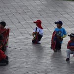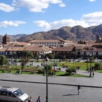 Nos chambres ne seront disponibles qu'à 14h, ce qui nous laisse pas mal de temps. Avec le jour qui se lève, nous nous installons dans la TV room, alors que tout le monde dort encore ici, et trions des photos et des vidéos jusqu'à 8h30, afin de pouvoir les prochains jours mettre sur le site les médias correspondant à notre séjour dans la jungle. Nous allons ensuite au bar de la guesthouse, très grand, façon bar américain, où nous prenons le petit-déjeuner. Il doit y avoir une bonne ambiance le soir ici, vu le lieu. Nous changeons ensuite de place, et allons près de l'entrée, dans la cour intérieure, près d'une table de ping pong placée en son centre, et avançons sur le site. A 11h, bonne nouvelle, notre chambre est prête. Au n°110, au bout d'un long couloir, deux lits, une petite salle de bain, et pas de fenêtre. Hop, on ouvre les sacs, et prenons une douche. Nous repassons encore un peu de temps sur le site pour terminer ce que nous faisions, et sortons découvrir les alentours et manger un peu. Nous avons envie de japonais, et avons une adresse en tête, même si la personne à l'accueil nous en indique une autre, apparemment très bien. Dehors, c'est animé. Pas mal de monde, que ce soit des jeunes, des touristes, des collas ou autres. Il fait très beau. Nous passons par une rue piétonne, large, bourrée de magasins de chaussures, arrivons près d'une église, puis tombons sur la Plaza de Armas, une grande place rectangulaire. Ici, les restaurants sont aux étages, et l'on mange sur un balcon donnant sur la place. Une cathédrale et une autre église sont disposées autour du petit jardin fleuri central. Les bâtiments ne font pas plus de un étage, et les trottoir abrités par des galeries. C'est assez sympa. La zone est classée à l'Unesco. En nous promenant, nous tombons par hasard sur le couple hollandais-néo zélandaise croisé hier à Puno, et à Rurrenabaque. Le monde est petit. Nous avons très faim, mais les attendons un quart d'heure pour qu'ils se joignent à nous. En attendant, nous allons voir le restaurant "Limo" conseillé par la guesthouse, en plein sur la place, et nous nous y installons, car cela a l'air très bien. La carte est en effet originale, et donne clairement envie. Fred va chercher Peter et Chris, qui nous attendent pas très loin, et nous prenons finalement tous quelque chose à manger, accoudés sur une fenêtre donnant sur la place. Nous restons ainsi deux heures et demi, à discuter ensemble en picorant dans les plats qui envahissent la table.