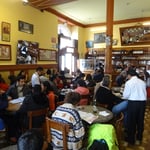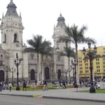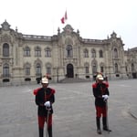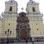 Dernier jour au Pérou aujourd'hui. Journée de visite du quartier historique. Mais avant, nous terminons la mise à jour du site, ce qui nous prend une bonne partie de la matinée. Nous partons du coup vers 13h30, en taxi, pour monter plus au nord, et atteindre le "square principal", autrement dit la Plaza de Armas, où se trouvent le palais gouvernemental et la cathédrale de Lima. Notre chauffeur est bavard, et content de rencontrer des français. Il nous dépose après 15 grosses minutes en plein milieu de la place, fréquentée par des touristes, mais surtout des péruviens. Il fait toujours aussi gris, et un peu frais. La place, de 1400 m², fut le centre du camp établi au 16ième par Francisco Pizarro, mais aussi celui de l'empire de l'époque. Aucun batiment n'a par contre survécu à l'érosion du temps, mais la statue au centre date de 1650. Nous passons devant le palais du président, où des gardes veillent comme devant Buckimgham (il y a même une relève de la garde tous les jours, à midi, sur le thème de "El Condor pasa"), et allons voir la cathédrale, reconsruite plusieurs fois à cause des tremblements de terre. Le corps de Pizzaro aurait été conservé ici, dans la crypte, des siècles. Cherchant un endroit pour manger, nous nous installons, sur les conseils de notre chauffeur de taxi, dans un bistrot aux allures européennes, "bar Cordano", célèbre pour accueillir tous les présidents au moins une fois pendant leur mandat. L'endroit rappelle les cafés parisiens. Ca s'affaire, ça envoie, dans un décor simple de tables et de chaises, posées sur une surface carrelée, avec d'anciennes photos des lieux aux murs. Le garçon paraît au début efficace, mais ne l'est finalement pas. Nous commandons (jambon de pays, filet mignon qui est loin de ressembler à ce que nous avions en tête, et calamars frits), et sommes servis en décalé. Audrey a fini quand le plat de Fred arrive. Pas grave, l'ambiance est bonne et change des endroits habituels. Puis nous reprenons notre balade, et nous arrêtons au Monastère San Francisco, principalement connu pour ses catacombes, et sa librairie comportant 25 000 ouvrages antiques. L'endroit est grand. Nous suivons différents groupes et guides, et passons effectivement par les catacombes, où des centaines de restes humains sont entreposés et alignés par endroits. Nous y restons 45 minutes, soit bien plus longtemps que nous pensions. Et sans prendre de photo, car c'est interdit. Nous passons dans le parc de la Muraille, pour observer les restes d'une muraille qui encerclait la ville en 17ième siècle. Tiens, un peu partout, des panneaux explicatifs donnent des infos, et permettent d'en apprendre un peu plus. Depuis le temps que nous en réclamions. Mais pourquoi ne font-ils pas ça dans les endroits qui comptent, comme dans les ruines incas visitées cette semaine ? Privilège de la capitale ? Peu importe. Nous quittons la Plaza de Armas, et descendons "El Jiron de la Union", une rue commerçante et piétonne menant à la place San Martin. Il y a beaucoup de monde, des magasins moyenne gamme de vêtements ou de chaussures, ou encore de tatouages. Nous achetons quelques churros, puis vers 18h, après avoir arpenté cette longue rue, nous rentrons.