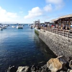 Nous débarquons ainsi sur cette nouvelle île à 16h20. Le changement est à peine perceptible : un petit port, des rochers noirs, de petites boutiques, des dive centers, et des otaries sur les