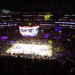 A 17h, nous passons déposer nos affaires à l'hôtel, dans le centre, pas très loin du Staples Center, réservé ce matin sur internet avant de partir. Douche rapide, et départ pour le Staples Center, afin de voir les Lakers, pour leur premier match de la saison, jouer contre les Clippers, l'autre équipe de Los Angeles. Arrivée une heure après, pour un match à 19h30. En avance, nous nous promenons dans le célèbre stade, et nous absorbons l'ambiance. Début de match, on vous laisse avec les vidéos. Une heure après le début du match, le 2ème quart n'est toujours pas fini (il y en a 4 en tout). En tout, le temps de jeu effectif n'est que de 23 minutes à ce moment. Le reste a été occupé par des arrêts de jeu, des choix tactiques, et autres. Un match de basket, qui dure normalement 48 minutes, dure donc en général plus de deux heures. A la mi-temps, le score est de 28 à 30 pour les Clippers. Mais à la fin, revirement et l'ancienne équipe de Magic Johnson s'impose 116 à 103. C'était super, on vous racontera de vive voix.