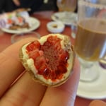 Le chocolat chaud était vraiment bon, avec du Dulce de Leche au fond, bien crémeux et fondant, et les "Fra-Nui", ces petites framboises entourées de chocolat... miam