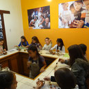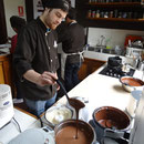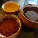 Nous n'avons pas résisté, après la visite, à prendre un chocolat chaud préparation "Maya", où le chocolat fondu doit être mélangé manuellement au lait chaud. Du miel et du piment sont là pour accompagner et doser à votre guise pour rendre le tout plus subtil. C'était bon, surtout avec un peu de piment, mais de manière surprenant pas transcendant.