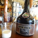 va nous chercher un peu de cette pâte de vanille pour nous la faire goûter, puis revient après avoir de nouveau discuter ensemble... avec une bouteille d'1 litre de cette pâte, dont il nous fait