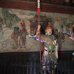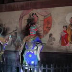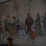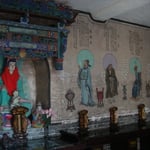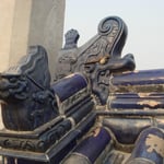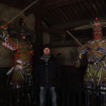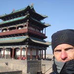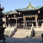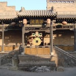 Il fait vraiment froid. Nous sentons à peine nos mains, et décidons d'entrer dans un café, dont la devanture est surperbe, pour prendre un chocolat chaud et un petit déjeuner. En face, un magasin vend des sabres. Il n'y a quasiment personne, la ville se réveille. Enfin, la vieille ville, car, au delà des remparts, c'est très urbanisé. Nous nous en rendons compte lorsque nous montons sur ces derniers, et parcourons la muraille sur 400 mètres. Le périmètre fait 6 km. Nous passons devant une partie des 72 tours de garde intégrées aux fortifications. Chacune d'elles renferme un passage de "l'Art de la Guerre", écrit par Sun Tzu. Nous allons aussi visiter le temple de Confucius, bien plus grand que nous le pensions. Idem, la devanture est d'époque, et nous plonge 700 ans en arrière. A l'intérieur se trouve également le plus ancien bâtiment de la ville, érigé en 1163. L'ensemble est assez impressionnant. Il y a plusieurs centaines d'années, c'est ici que les bureaucrates en devenir passaient leur examen impérial. Ca bossait dur, et ça ne devait pas rigoler, vous ne croyez pas ? Il fait tellement froid que nous rentrons dès que nous pouvons dans les salles entourant chacune des cours, bien que celles-ci ne soient pas chauffées, mais juste protégées par une porte d'entrée faite de bandes verticales de plastique un peu épais. Nous visitons donc statues, peintures, sculptures ou temples, même si c'est parfois rapide. Les sculptures ont, à plusieurs reprises, des formes diaboliques, afin de repousser les mauvais esprits. Nous voyons aussi des peintures n'ayant pas été restaurées, magnifiques, authentiques. Authentique. C'est le mot qui correspond le mieux à la ville, et à notre sentiment. Au milieu de la vieille ville, la City Tower, sur laquelle nous montons. Et comme dans la Cité Interdite, se trouve à Pingyao un des rares murs composés de neuf dragons, en relief, situé derrière un vieux théâtre plein de charme.