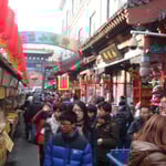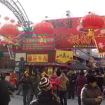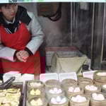 Nous repartons et retournons dans le centre commercial pour dîner. Nous hésitons à changer de quartier, mais il est déjà 19h30, les distances sont grandes, nous n'avons dormi que quelques heures dans l'avion cette nuit, et voulons prendre des forces pour ne pas être KO demain. Découvrir un nouveau quartier à ce moment ne serait pas raisonnable, à moins d'avoir une adresse précise où aller en tête. Mais nous préférons la facilité, et juste marcher en savourant le fait d'être là, en Chine, à Shanghaï, en ayant la tête légère et aucune forme de stress à cet instant. Dans la galerie, nous nous arrêtons dans un restaurant... chinois, pour découvrir. Nous prenons des dumplings (qui auront comme ce midi leur bouillon à l'intérieur, mais ne seront pas aussi bons), des beignets de pomme de terre, du boeuf sauté... on essaie un peu de tout. On aime assez, sans tomber par terre. De toutes façons, par rapport à ce genre de repas en Inde, dans ce genre de circonstances, c'est bon. Nous repartons ensuite en métro à notre guesthouse, et fermons les yeux plus vite que notre ombre....