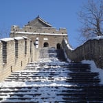 bonhomme de neige dehors, ambiance chaleureuse, nous sommes au bon endroit. Des affiches pour aller voir la grande muraille, voir un spectacle d'acrobates, ou un de kung fu, sont posées sur le