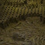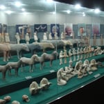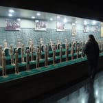 Nous arrivons au milieu de ces deux collines, sous lesquelles reposent les tombes de l'empereur et de son épouse. L'endroit est quasiment désert, au point que cela fait presque peur. Nous visitons le musée sous-terrain, impressionnant de modernité, renfermant les tombes. Lorsque nous voyons des photos de présidents français ayant visité l'endroit, nous nous disons que cela valait peut-être le coup de venir. Nous passons dans une salle à la lumière tamisée, et la température élevée (on aime), après avoir mis de petits sacs plastique conçus spécialement pour mettre autour des chaussures, et destinés à protéger les vitres sur lesquelles nous allons marcher. Car, en effet, nous allons parcourir les découvertes faîtes ici, regroupées en 21 fosses, quelques mètres au dessus de celles-ci. Cela est d'une part assez novateur, et rend la visite beaucoup plus agréable et intéressante d'autre part. Nous retrouvons, un peu comme hier, des statues et poteries en terre cuite enterrées à côté de la tombe de cet empereur. D'ailleurs, savait-il que son prédécesseur avait fait de même, mais avec des soldats d'une autre dimension, pas très loin ? Mystère. 50 000 figurines, incluant statues d'hommes miniatures, animaux domestiques ou d'élevage, poteries ou encore sceaux royaux, ont été découvertes. C'est assez impressionnant, surtout la galerie regroupant un millier d'animaux, allant de la poule au boeuf en passant par le chien, le cochon, le cheval ou la chèvre. L'idée était de montrer à quel point les techniques d'élevages étaient maitrisées et sophistiquées pour l'époque. Certaines de ces figurines sont présentées encore à moitié enterrées, et on imagine le travail qu'il a fallu pour les déterrer. Ici aussi, elles sont toutes différentes, et étaient habillées de robes en tissu, souvent en soie, de différentes couleurs. Le corps est en terre cuite, mais les bras, articulés au niveau des épaules, en bois. Ce qui explique pourquoi ils ont disparu aujourd'hui. Nous apprenons les techniques de moulage utilisées, comme par exemple le fait que les détails du visage (le nez par exemple) étaient collés une fois le corps fabriqué. Devant ce nouveau trésor archéologique, nous ne regrettons pas une seconde d'être venus jusqu'ici. Et dire que de l'extérieur, on ne voit qu'une banale colline sans intêret. Nous nous disons qu'avec les travaux en cours un peu partout dans le pays, et leur dimension parfois pharaonique (comment ne pas penser au barrage des Trois Gorges), qui vont s'accélérer dans les ving prochaines années, le pays va encore découvrir bien des choses sur son histoire. Même pour les archéologues, la Chine est l'endroit où il faut être ! Pour rappel, ce que nous visitons aujourd'hui n'a été découvert qu'en 1997.