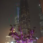 dans la tour juste en face, au 87ième étage de la Jin Mao Tower. Il fait nuit désormais. Tout est éclairé. Les buildings tranchent dans le ciel noir. Toutes les décorations de Noël sont