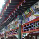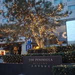 dans une contre-rue, gardée par deux grands lions en pierre (au style très asiatique) ; nous empruntons le chemin, passons derrière un restaurant, et entrons enfin. Sapin de Noël sur le côté,