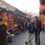 Comme hier, nous sommes réveillés par le contrôleur une demi heure avant notre arrivée. Il fait toujours nuit quand nous descendons du train. La gare est grande, et dehors, une grande place déjà bondée pour cette heure matinale s'offre devant nos yeux, tout comme ce mur de pierre, telle une muraille, qui part de gauche à droite. Un peu plus loin, toujours devant nous, des enseignes lumineuses, un Mac Donald dont les néons éclairent tout le trottoir, et pas mal de circulation. Cette ville de plus de 3 millions d'habitants semble bien plus urbanisée que nous ne l'avions imaginé. Nous retrouvons facilement nos amis espagnols. Nous prenons tous un tuk tuk, chacun le notre, pour rejoindre nos quartiers. Notre guesthouse n'est pas très loin, à environ 10 minutes. Tout près, un grand bâtiment rectangulaire, dans le plus pur style soviétique, avec le drapeau chinois flottant au dessus. Probablement quelque chose d'administratif, ou du gouvernement. Nous apprendrons plus tard que c'est une préfecture. A la réception, nous bookons une chambre pour ce soir. Elle sera prête deux heures plus tard, vers 9h, le temps pour nous de prendre un petit déjeuner, et de regarder si nous avons quelques commentaires à lire! Nous sortons juste après pour rejoindre nos amis dans leur guesthouse, à 20m de la notre. Nous convenons de nous retrouver vers 9h30, et de voir si nous allons ensemble voir l'armée en terre cuite, et comment s'y rendre, car nous sommes cinq. Notre chambre est enfin prête. Elle est terrible. Grande, la couette épaisse, et la salle de bain presque luxueuse, avec une cabine de douche et un carrelage en imitation marbre. Ca tombe bien, ce soir, c'est la nuit de Noël.