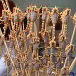 Nous continuons, et partons sur la gauche, à l'entrée de cette fameuse rue si populaire. Une arche est à l'entrée. La rue est relativement étroite, comparée à celle d'avant. Ca s'agite, il y a beaucoup de monde. Des marchands de bonnets, de tout et de rien, de boucles pour les cheveux... et des magasins de bouffe, comme ceux que nous avons vus juste avant, et d'autres, beaucoup plus... spéciaux. Il vaut mieux avoir faim, ou pas, au choix. Toutes ces petites échoppes vendent des animaux exotiques ou insectes en brochette. A 20 yuans la brochette, nous trouvons cela un peu cher. Mais surtout, nous n'avons vraiment pas envie d'essayer. Il y a en effet des scorpions, petits, un peu comme ceux que l'on trouve dans l'Aude, puis plus loin, de plus gros, noirs. A côté, des larves, ou des insectes que nous ne parvenons pas à identifier. C'est bon peut-être. Mais notre esprit formaté a du mal à s'y faire. D'autres brochettes de viande, à côté, paraissent plus appétissantes. Nous posons la question afin de savoir ce que c'est. Du serpent, et du chien! Fred demande de quelle race de chien il s'agit, mais impossible de savoir. Est-ce d'ailleurs vraiment du chien ? Nous ne le saurons pas. C'est la première fois que nous en voyons. Il paraît que l'on en mange dans certaines régions du pays, mais cela ne semble pas commun néanmoins. Sûrement beaucoup moins qu'on l'imagine. Nous ne goûtons pas. Un peu plus tard, nous regretterons de ne pas avoir tenté le serpent, qui a goût de poulet d'après un européen nous faisant part de son témoignage. Nous continuons, et demandons ce qu'est ce truc qui ressemble à de la langue. C'est de l'estomac de boeuf. Encore plus loin, de gros criquets, qui doivent croquer sous la dent, ou encore des espèces de salamandre. Anyone interested ? Plus appétissantes sont ces sucreries, genre nougat, dont la pâte est frappée à grands coups de marteau géants, retournée, puis de nouveau frappée une multitude fois. Fred pose la question et s'empare du marteau, pour faire de même. Nous goûtons, et c'est assez bon. Un goût de cacahuètes. Nous parcourons ainsi la rue, puis faisons marche arrière. Sur le chemin, quelque chose que nous n'avions pas vu à l'aller : de petites poches d'eau, qui tiennent dans la paume de la main, et dans laquelle sont emprisonnés... de petits lézards, ou des tortues d'aquarium. Vivants, bien sûr. Nous les voyons bouger, en regardant bien. Oups.