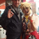C'est surtout l'atmosphère qui est particulière. Lorsque nous demandons notre chemin, les gens allument immédiatement Google Map (en France, cela prend un temps fou, ici, c'est immédiat), puis nous accompagnent. Les filles sont toutes apprêtées, et ont toutes du style. A la caisse d'un supermarché, dans lequel nous trouvons tout un tas de choses jamais vues en France (des trucs à tête de Mickey pour les bottes afin de conserver leur forme quand elles sont rangées, des chaussettes montantes ultra douces - vous pourrez toucher ! - des tentacules de poulpes en barquettes à emporter...), nous croisons Luigi, sorti tout droit du jeu vidéo Super Mario Bros. Dans la soirée, en nous appuyant contre un mur en attendant le feu, ce dernier s'ouvre et laisse place à une salle de jeu, hallucinante, où jouent frénétiquement petits ou grands, du gamin à la grand-mère. Nous tombons aussi sur un magasin "Hello Kitty" très bling bling. Fred aperçoit des magasins de guitares, bien plus grands qu'à Paris, et en essaie une ou deux, dans des endroits différents. Ce soir, en cherchant un restaurant pour dîner, malgré le choix à tous les coins de rues, nous passons par hasard dans un magasin vendant des chiots, tous dans de petites capsules. Un Belge est là, et nous discutons. Il nous en conseille un de grillades japonaises. Etant venu quatre ou cinq fois, et sachant que le restaurant est au 17ième étage d'une tour, nous le suivons. Sur le trajet, nous discutons. Il nous parle de la langue japonaise. Nous apprenons qu'il existe dans l'archipel nippon 7 niveaux de politesse, à employer en fonction de l'interlocuteur. Le septième niveau est réservé à ceux qui s'adresse à l'empereur, et ceux qui ne le maitrisent pas ne peuvent donc lui parler. Il nous dit par exemple qu'une animatrice radio a dû apprendre une nouvelle manière de parler, comme une nouvelle langue, lorsqu'elle a été promue et a changé de poste et est devenue présentatrice télé. Parlant japonais, il nous dit également qu'il est plus difficile pour un japonais d'apprendre le français, que l'inverse, à cause du "r" que les japonais n'arrivent pas à prononcer.