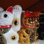 pas vues les dernières fois. Elles sont petites, une seule voie pour les voitures, des trottoirs larges, bien sûr très propres, des magasins toujours soignés, comme ce vendeur de katanas dont la